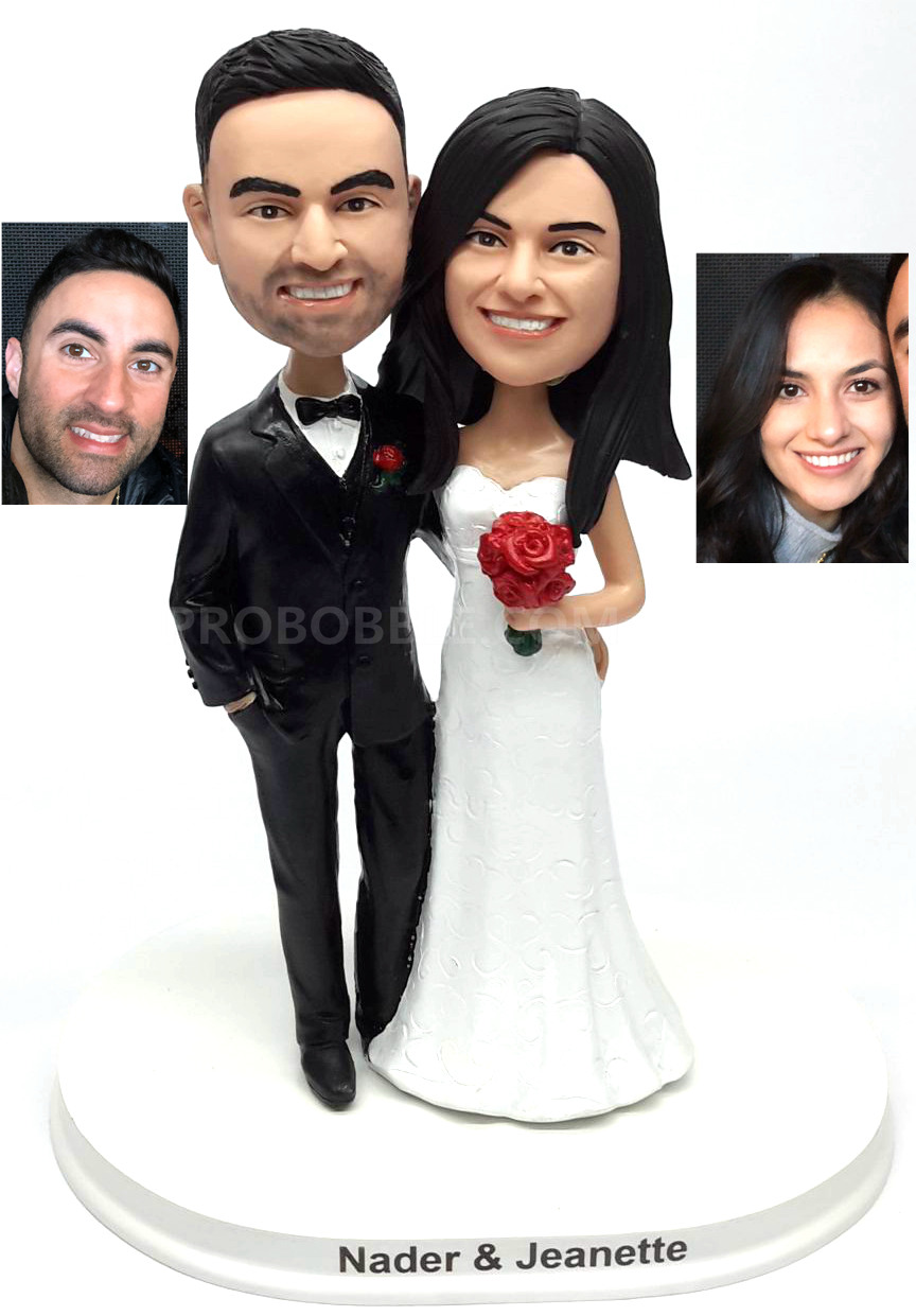Home    Wedding Bobbleheads    Bobblehead Cake Toppers    Custom bobbleheads wedding toppers on cake