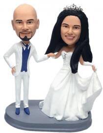 Are you getting married in the nearly future? Are you looking for new ideas and preparing unique wedding accessories? Wedding day is the most important day of our life. We all wish an unforgetable wedding ceremony, hoping the good memory lasts a lifetime. Custom bobbleheads now become increasingly popular with new couples. We customzie hundreds and thousands of bobbleheads/cake toppers for our customers, and groomsman bobbleheads for their best man, and bridesmaids bobbleheads for maid of honor and flower girl. Unlike the traditional ways of giving a flask or money clip to men and some kind of jewelry or tote bag to women after the wedding, sending them bobbleheads is a very special and unique experience. All people who receive a bobblehead looks just like him/her laughs lould! If you are a wedding guest, wedding bobblehead doll is a great gift idea for both displaying in their house year-round for all to see, and also a perfect talking topic for the guests. It's destined to be more adored by the newlyweds than flower, dish, fork or jewelry. In this category, we provide a great large number of wedding bobbleheads for you to select . They vary in outfits colors, styles, poses and accessories, and you are sure to find your favorite wedding bobbleheads here. Buy now! And make your wedding unforgettable!